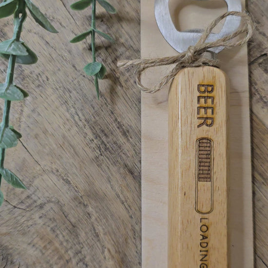 Dieser liebevoll gestaltete Bieröffner ist das perfekte kleine Geschenk, um jemandem ein Lächeln zu schenken – humorvoll, praktisch und wunderschön präsentiert. Der stabile Holzgriff trägt die witzige Gravur „BEER LOADING…“ mit Ladebalken und sorgt direkt für gute Laune.