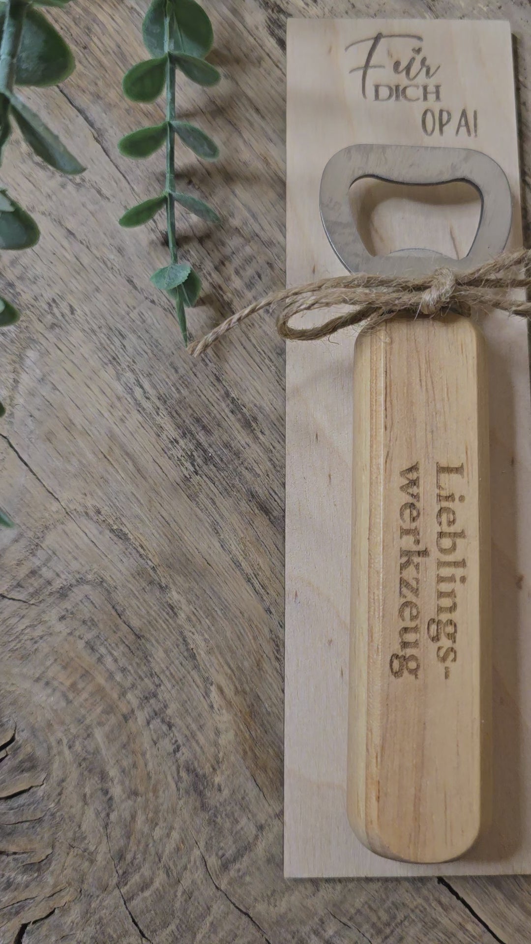 Überrasche deinen Opa mit einem besonderen Geschenk, das praktisch ist und gleichzeitig von Herzen kommt. Dieser hochwertige Bieröffner aus Holz liegt angenehm in der Hand und trägt die edle Gravur „Lieblingswerkzeug“ – perfekt für alle Opas, die gern mal ein kühles Bier genießen.
