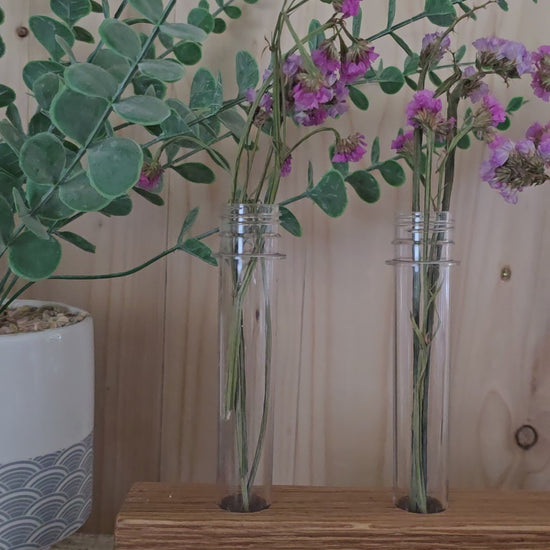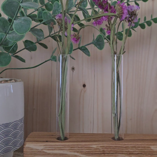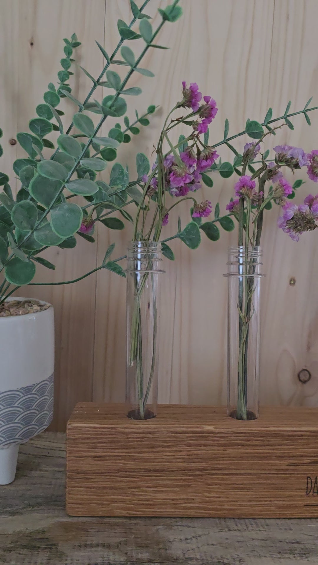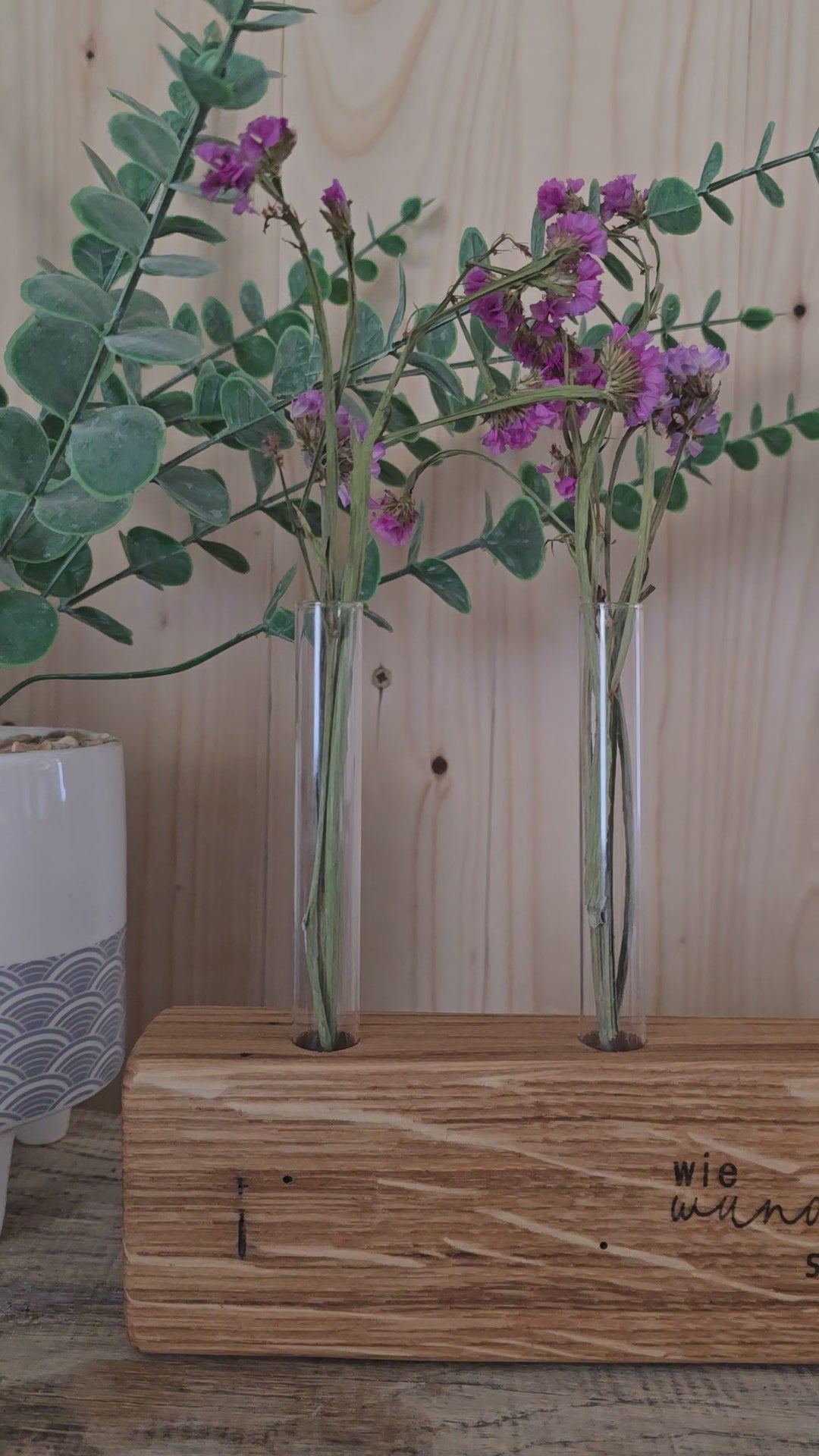 Blumenständer „Schön, das es dich gibt“ oder „Wundervoll“ – Holzblock mit Reagenzgläsern