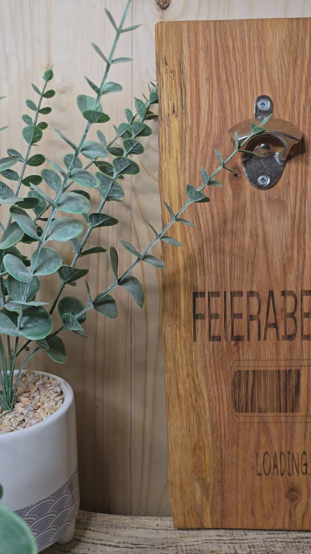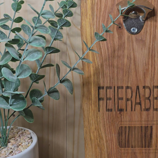 Feierabend Loading – Wand-Flaschenöffner aus Holz mit Gravur